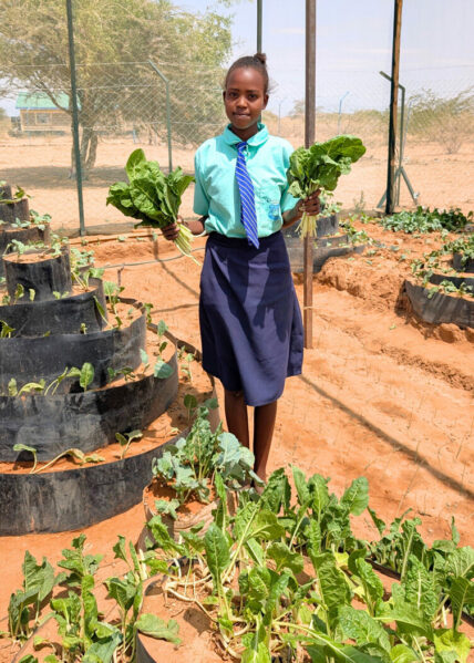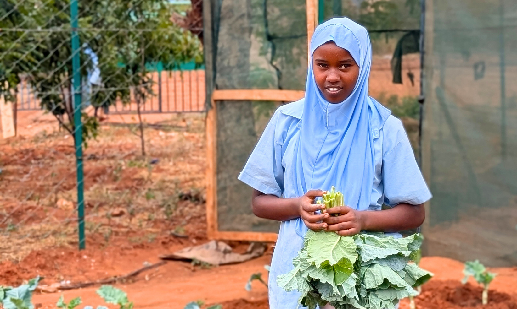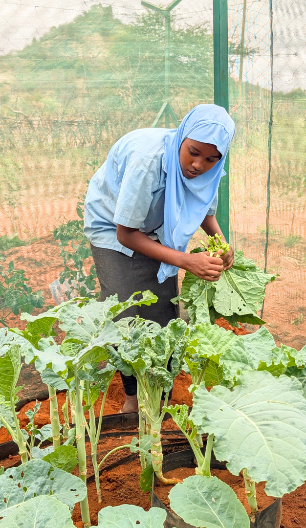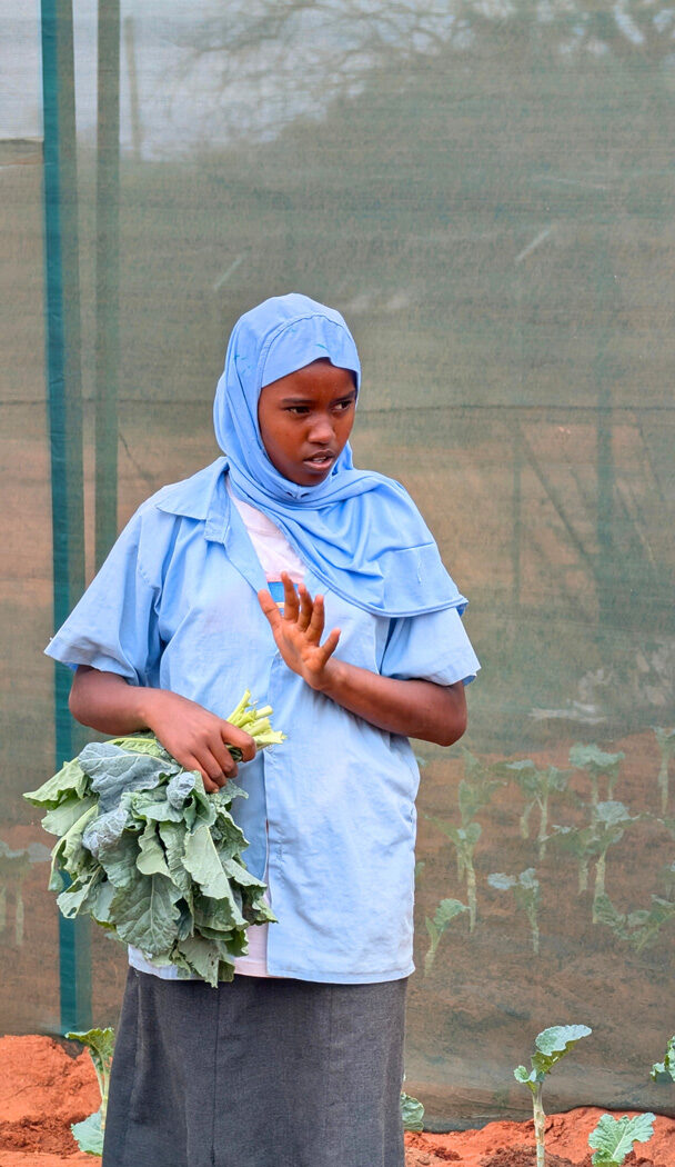 Trettonåriga Malich Qalicha Tache är noggrann när hon skördar kålen från skolans grönsaksland. Hon vet hur viktigt det är att äta näringsrik mat och hon har lärt sig hur man bäst odlar i det torra landskapet. Kunskap som hon delar med de andra eleverna på skolan.