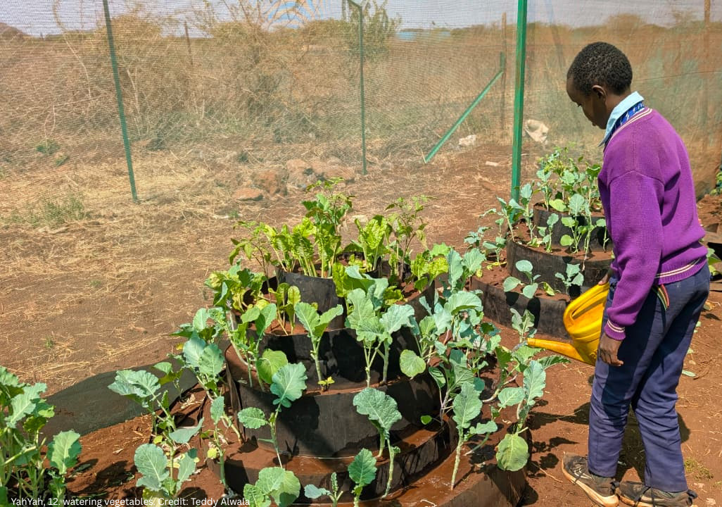 På schemat står det matlagning och i trädgårdslandet odlas det grönsaker. Tack vare stödet från Erikshjälpen kan eleverna på Karbururi Primary School äta näringsrik mat trots den svåra torkan i norra Kenya.