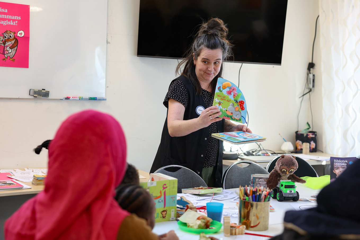 Efter lunch ändrar dagen fokus. Mellan 13 och 15 är det dags för Framtid Plus. Idag är bibliotekarien Joanna Meier på besök. Hon läser högt för barnen och pratar med föräldrarna om språk – om att ha flera språk. Om ordens betydelse och om hur språket bär både identitet och framtid. Barnen deltar nyfiket, fascinerade av Joannas energi och att hon både pratar flera språk och tecknar med händerna.