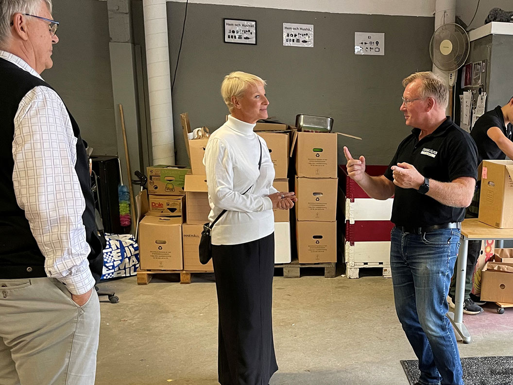 Under sitt besök fick Anna Tenje veta mer om hur Erikshjälpen Second Hand i Växjö fungerar som både mötesplats och arbetsplats. Verksamhetschef Jan Niklasson berättade att engagemang och sociala insatser går hand i hand. Volontärer, praktikanter och anställda skapar tillsammans en varm och välkomnande arbetsplats.